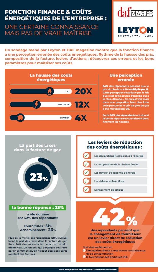 A lire : Afin d’aider les entreprises, Leyton a produit un guide « Maîtrise 360 des couts énergétiques » qui permet d’appréhender les raisons de ces hausses de coûts, de définir sa stratégie et recense tous les leviers mis à la disposition des responsables financiers pour parvenir à une réduction des coûts et une transition efficace.