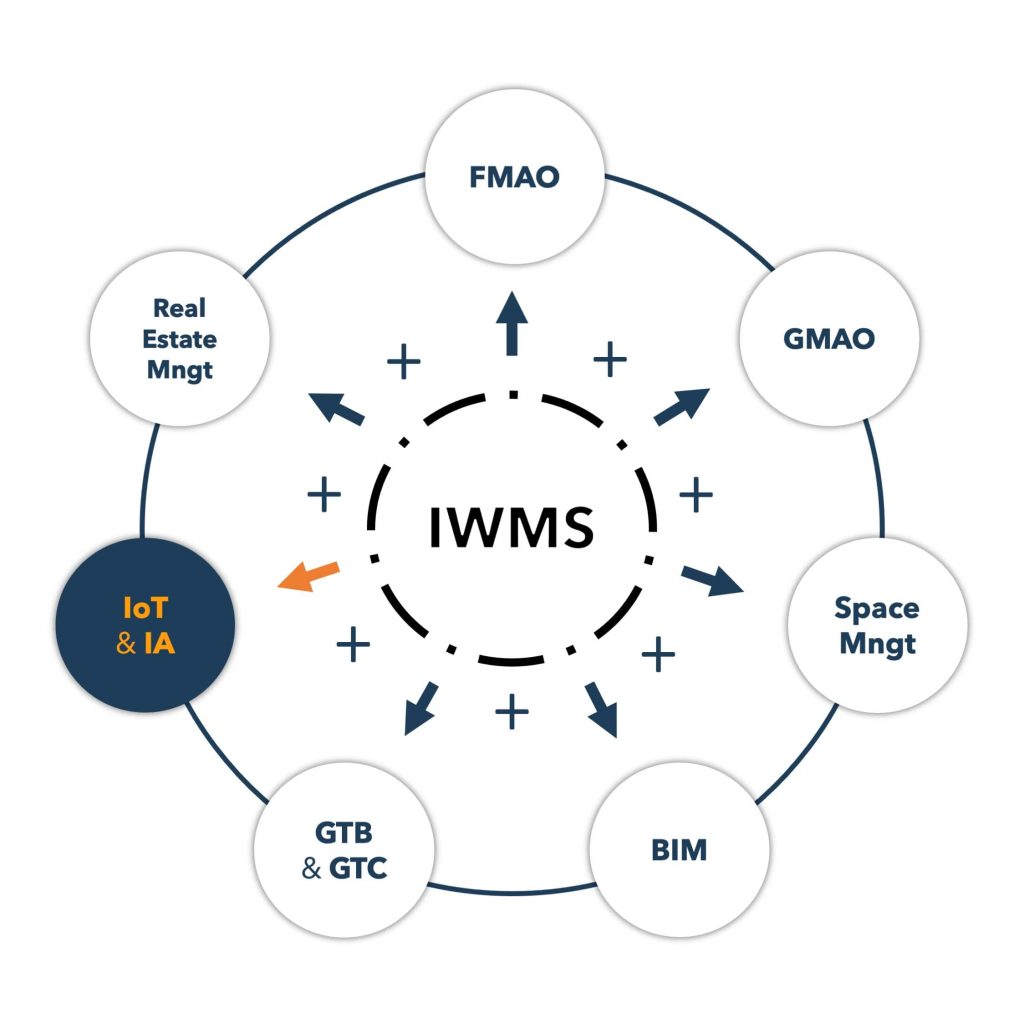 Ainsi, l’interopérabilité de l’IoT et de l’IA se retrouve au cœur d’une solution IWMS. Présents à chaque maillon de la chaîne, les objets connectés viendront réorganiser et encadrer le secteur du Facility Management.