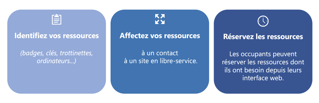 Badges, clés, ordinateurs, trottinettes… Avez-vous identifié l’ensemble de vos ressources ? Connaissez-vous leurs états ? Vos occupants peuvent-ils les réserver en autonomie ?